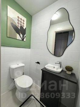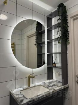 в ванной установлена столешница из керамогранита, зеркало с подсветкой, новые качественные смесители, стиральная машинка Gorenje.