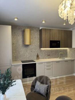 кухня под единой столешницей, встроенный холодильник, посудомоечная машина, микроволновая печь, духовка, использованы такие бренды как Bosch, Hyundai, Delongi;