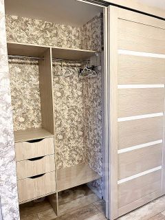Компактная, но очень вместительная гардеробная является изюминкой этой квартиры!