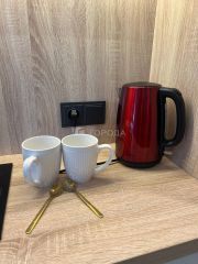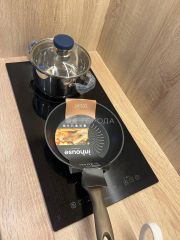 Кухня- гостиная оборудована всем необходимым для повседневной жизни: микроволновая печь, варочная панель, холодильник, чайник, посуда и другие кухонные принадлежности.