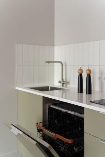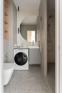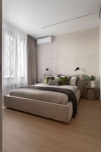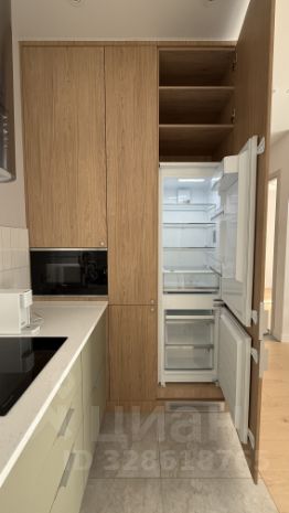 Квартира укомплектована встроенной кухонной мебелью и встроенной бытовой техникой (встроенный холодильник с морозильной камерой, индукционная варочная поверхность, посудомоечная машина, микроволновая печь с функцией духовки, вытяжка), в каждой комнате установлен кондиционер Haier. Теплый пол на кухне, прихожей и в санузлах.