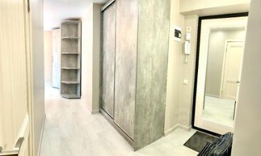 В квартире сделан качественный евроремонт, что создаёт приятную атмосферу и комфорт. Из мебели имеется всё необходимое как в комнатах, так и на кухне. В комнатах и на кухне есть современная техника: холодильник, телевизор, стиральная машина и кондиционер. Санузел совмещённый и оборудован душевой кабиной. Окна выходят во двор, поэтому в квартире тихо и спокойно.