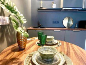 В студии всё новое: много мест хранения (шкаф и комод), комфортное рабочее место с с красивым видом, большая ванная-спа с тропическим душем, гигиенический душ, водонагреватель, телевизор, кондиционер, посудомоечная и стиральная машины, новая посуда, холодильник, индукционная плита, утюг, гладильная доска, сушилка, новые спальные принадлежности, подушки, пледы, ковры, большая двухспальная кровать с ортопедическим матрасом, всё необходимое для комфортной жизни.