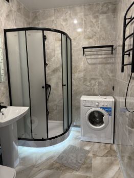 Квартира с дизайнерским ремонтом: всё выполнено в современном стиле, с учётом каждой детали. В комнате и на кухне есть стильная и функциональная мебель. На кухне установлен холодильник, а в комнате - телевизор, что добавляет комфорта. Ванная комната оборудована душевой кабиной и стиральной машиной. Есть балкон, где можно наслаждаться утренним кофе или вечерним чаем.