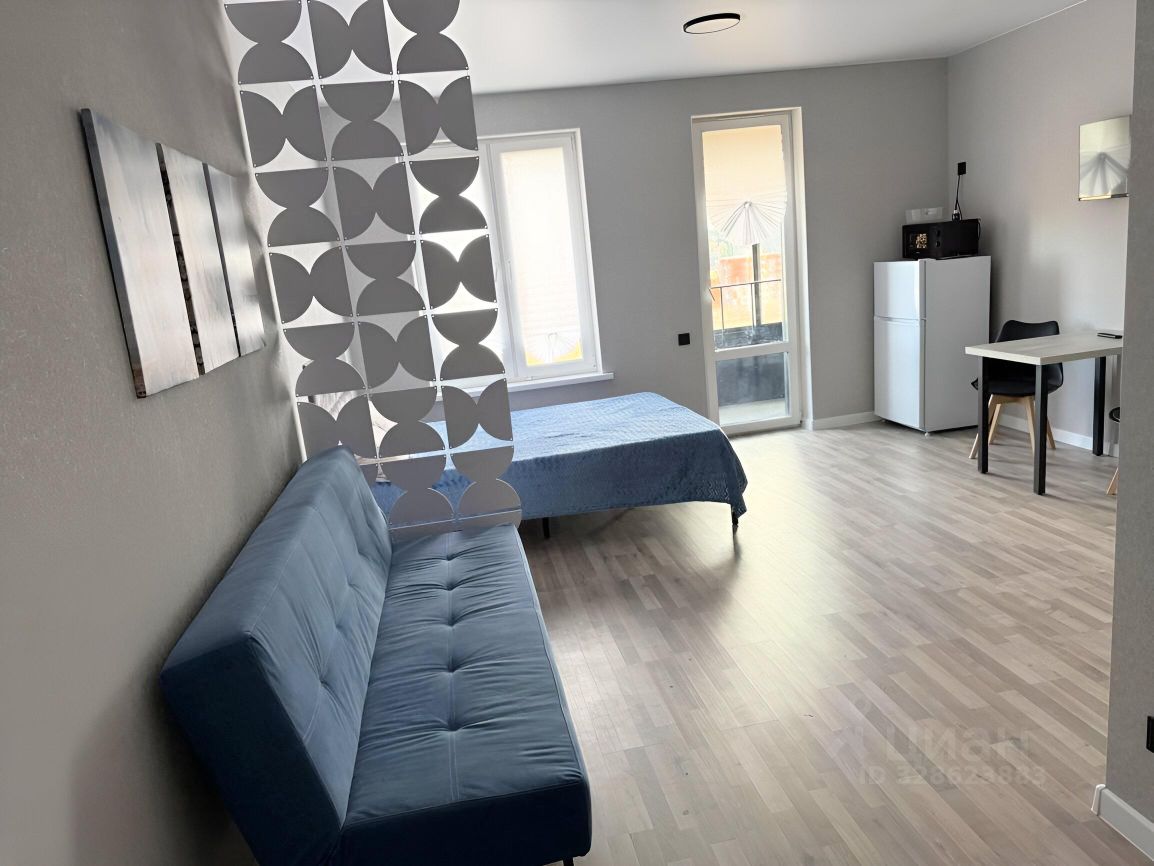 Сдаётся уютная студия в современном доме недалеко от метро Ольховая. Квартира расположена на 7 этаже 14-этажного здания и занимает 30 кв. м. Высота потолков составляет 2.8 метра, что придаёт пространству больше воздуха и света. Окна выходят на улицу, поэтому в помещении всегда достаточно естественного освещения.