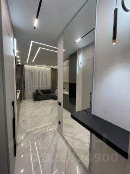 В прихожей предусмотрены удобный шкаф для хранения вещей, большое зеркало в пол, полка для мелочей.