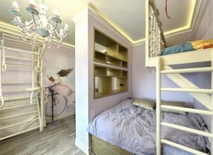 - детская с физкультурным комплексом, выполненным под заказ, и скалодромом, с уникальной кроватью с балконом