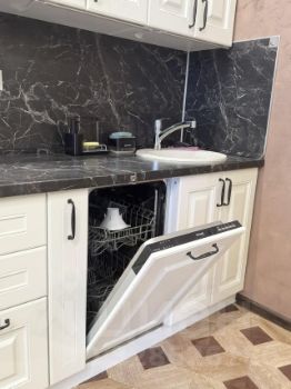 холодильник с морозильной камерой, духовой шкаф, микроволновая печь, вытяжка, индукционная варочная поверхность, чайник.