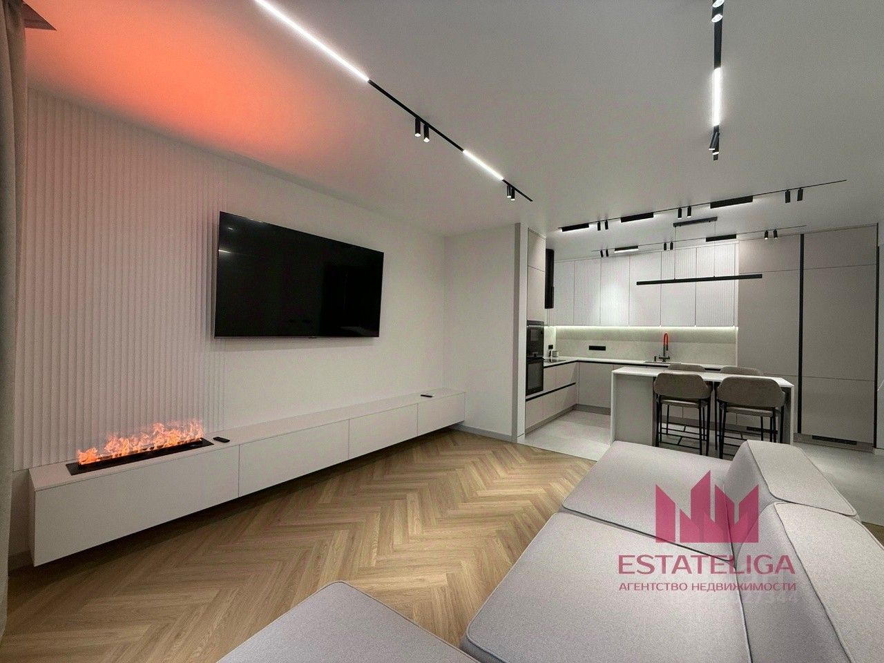 Большая кухня-гостиная с новой техникой
