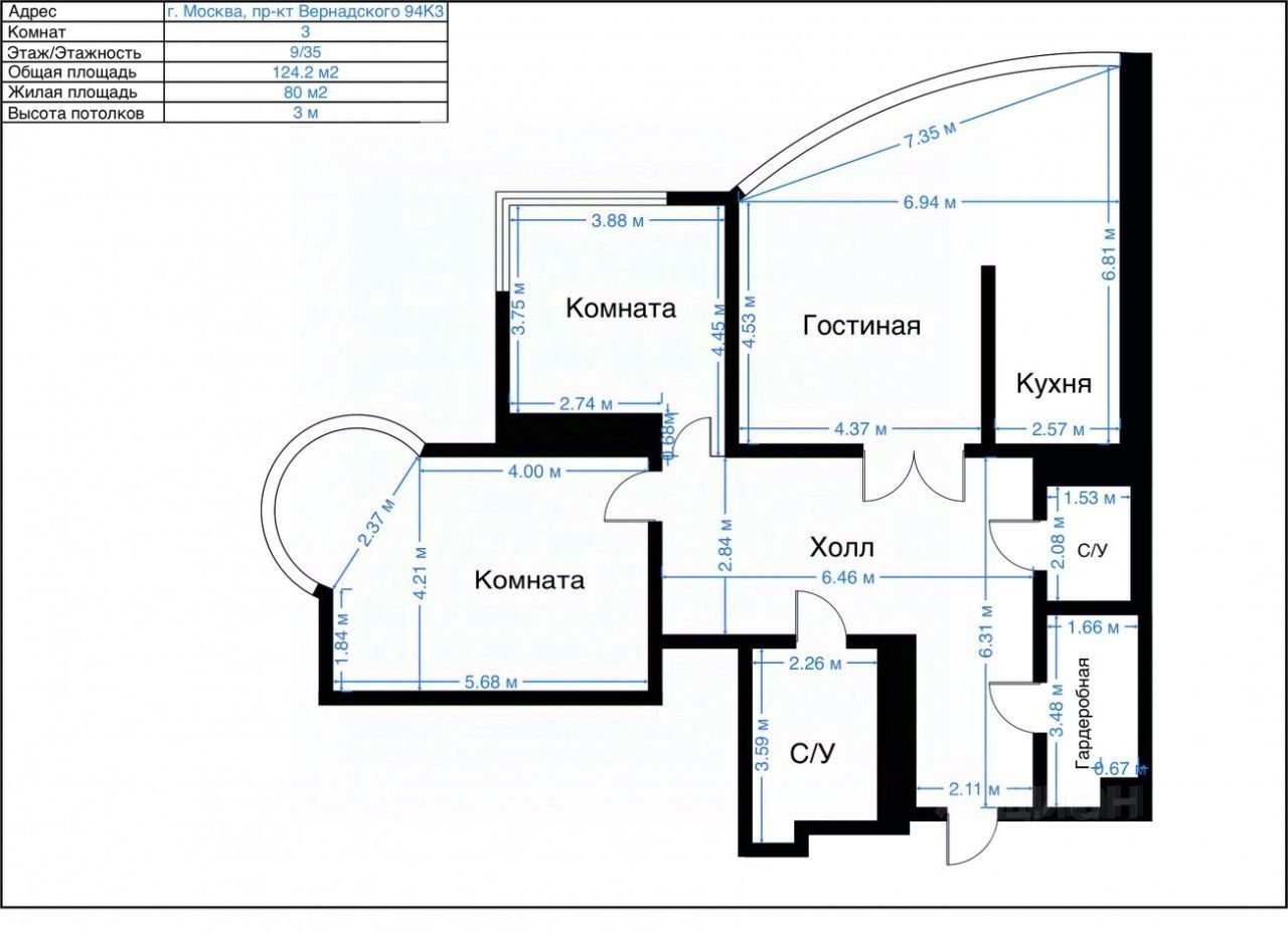 площадь: 124 кв. м;