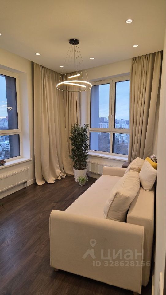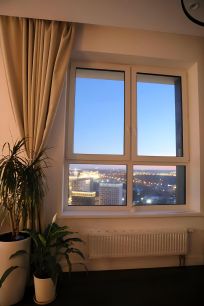 Окна выходят на набережную реки Сетунь, на юг и на запад. Квартира очень светлая, по вечерам красивые закаты. В квартире тихо с открытыми окнами, ночью слышно как поют соловьи.