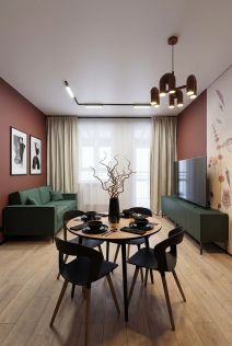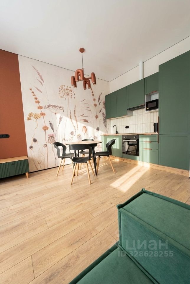 Сдаётся в аренду стильная евродвушка с дизайнерским ремонтом! Общая площадь — 56 кв. м, кухня — 18 кв. м.