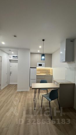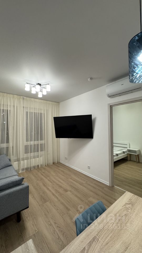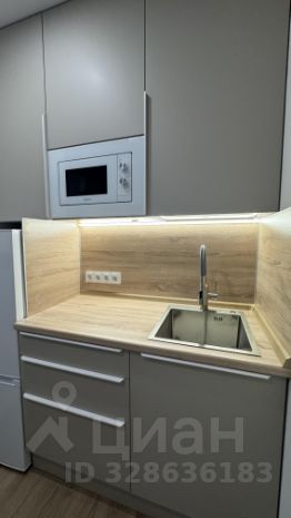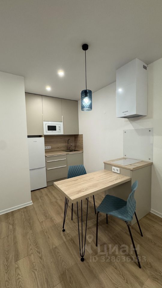Сдаётся видовая стильная однокомнатная квартира с дизайнерским ремонтом на 21-м этаже нового современного 32-этажного дома. Общая площадь квартиры составляет 31 кв. м, из которых 9 кв. м занимают жилые помещения и 16 кв. м — просторная кухня. Высота потолков — 2,6 метра.