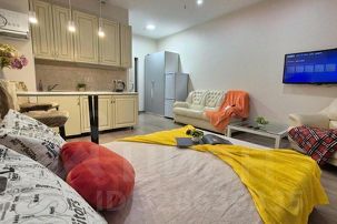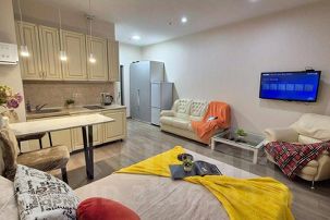 Квартира укомплектована для комфортного проживания, телевизор, стиральная машинка, кондиционер, холодильник, wi-fi , полностью оборудованная кухня, кондиционер, фен, 2х спальная кровать, плюс диван, средства для гигиены.