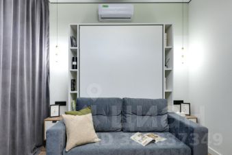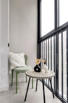 Балкон оборудован системой хранения и зоной отдыха. Для удобства арендатора и сохранения свободного пространства, установлена кровать-трансформер.