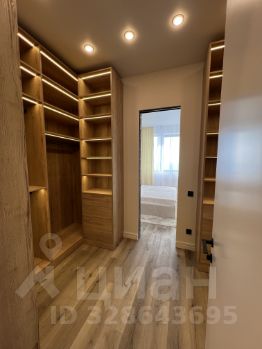 просторная мастер спальня с большой гардеробной комнатой, множество секций для хранения, сан узел с ванной, встроенной сушильной и стиральной машиной Bosch.