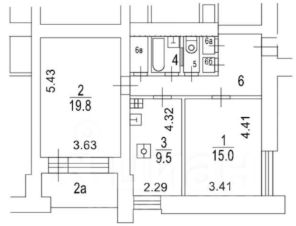 Комнаты 15 и 20 м2, окна на восток и север.