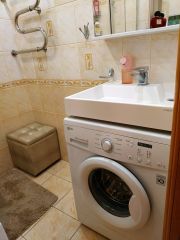 На кухне встроенный кухонный гарнитур, LCD телевизор, базовый набор качественной бытовой техники, включая микроволновую печь, 2-ух камерный холодильник, электрическую плиту со стеклокерамической рабочей поверхностью и духовым шкафом, стиральную машину и посудомоечную машину.