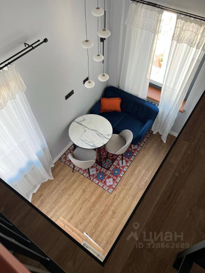 Функциональная планировка студии с гостиной зоной, кухней и спальным местом на втором уровне, совмещенный с/у с душевой кабиной. Стильный современный ремонт. Квартира полностью меблирована и оснащена всей необходимой бытовой техникой.
