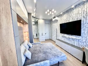Современный дизайнерский ремонт, высокие потолки (~3,2 М).