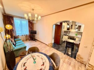 Кирпичный Сталинский дом. Высота потолков 3 метра. Чистый подъезд. Хорошие соседи. Большое количество парковочных мест во дворе и у дома.