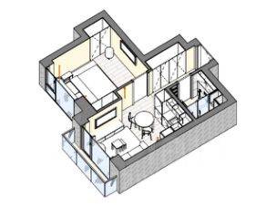 Квартира Расположено на 39 этаже с общей площадью 34 кв.м.