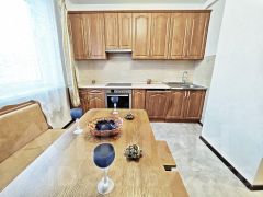 Вся необходимая мебель: гостиная, спальня. одна комната пустая, покупка дивана обсуждается, встроенная кухня с бытовой техникой Bosch (есть посудомойка), холодильник Indesit, стиральная машина Bosch, новый кондиционер с инвертером (охлаждение, обогрев).