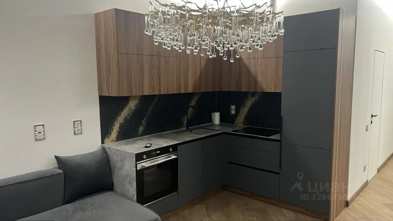 В квартире есть всё необходимое для комфортной жизни: современная мебель как на кухне, так и в жилой зоне, кондиционер, холодильник, посудомоечная и стиральная машины. Просторная кухня площадью 10 кв. м позволяет свободно готовить и обедать. В совмещённом санузле установлена душевая кабина, что удобно для повседневного использования.