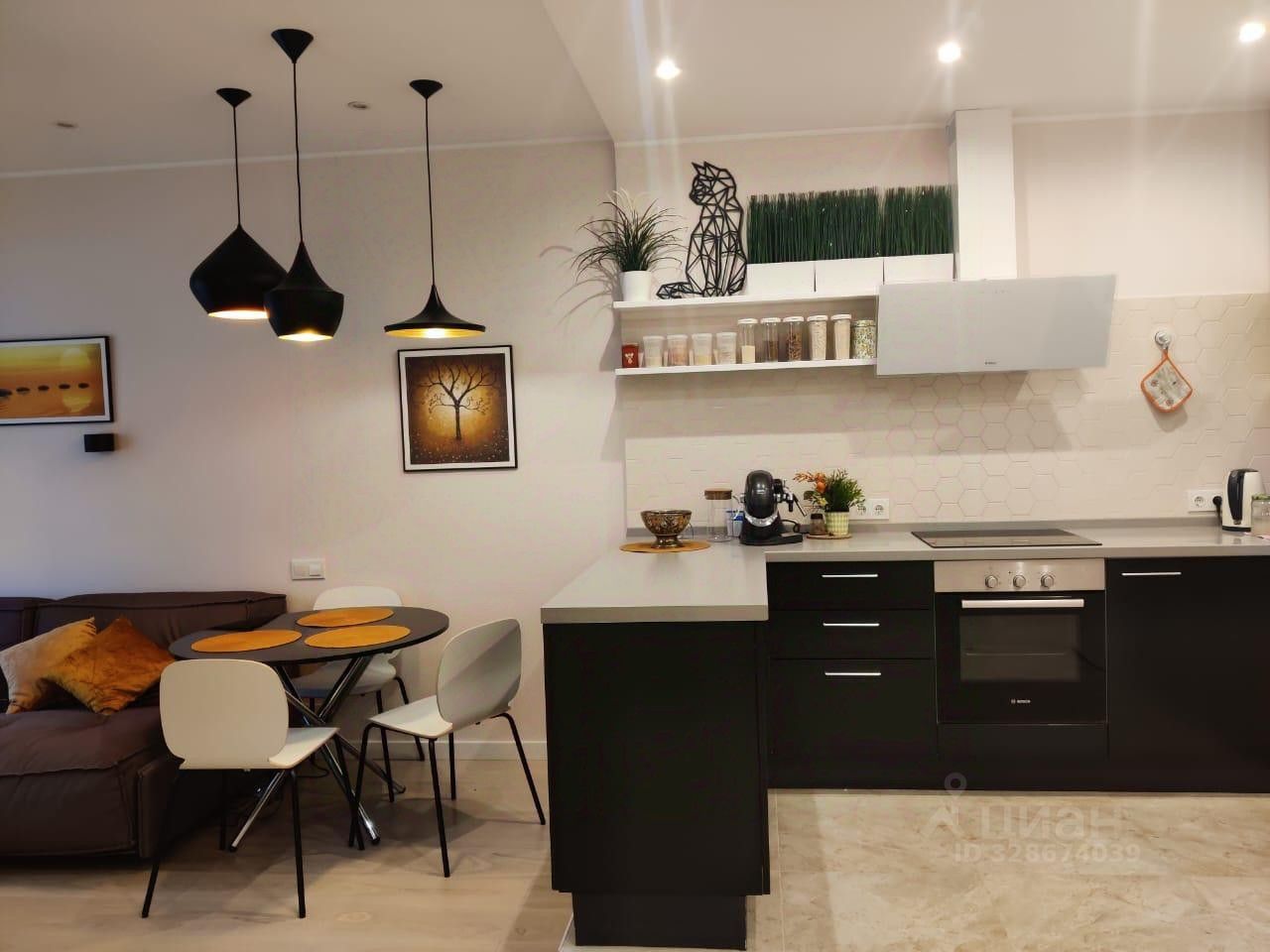 Квартира с дизайнерским ремонтом и просторной кухней-гостиной полностью меблирована и оснащена необходимой техникой для комфортного проживания. В вашем распоряжении кондиционер, холодильник, посудомоечная и стиральная машины, телевизор. В комнате и на кухне есть вся необходимая мебель. В ванной комнате установлена современная душевая кабина.