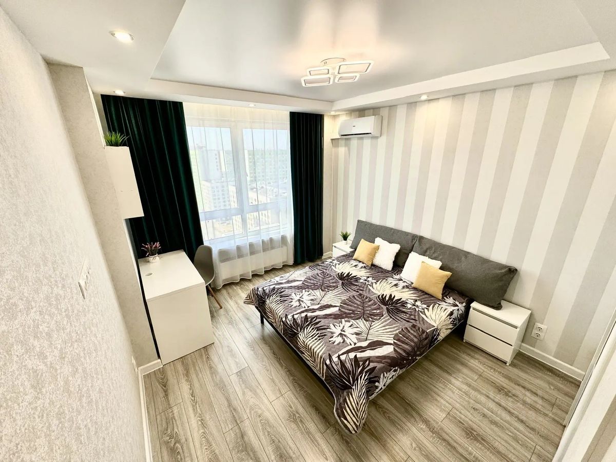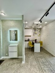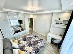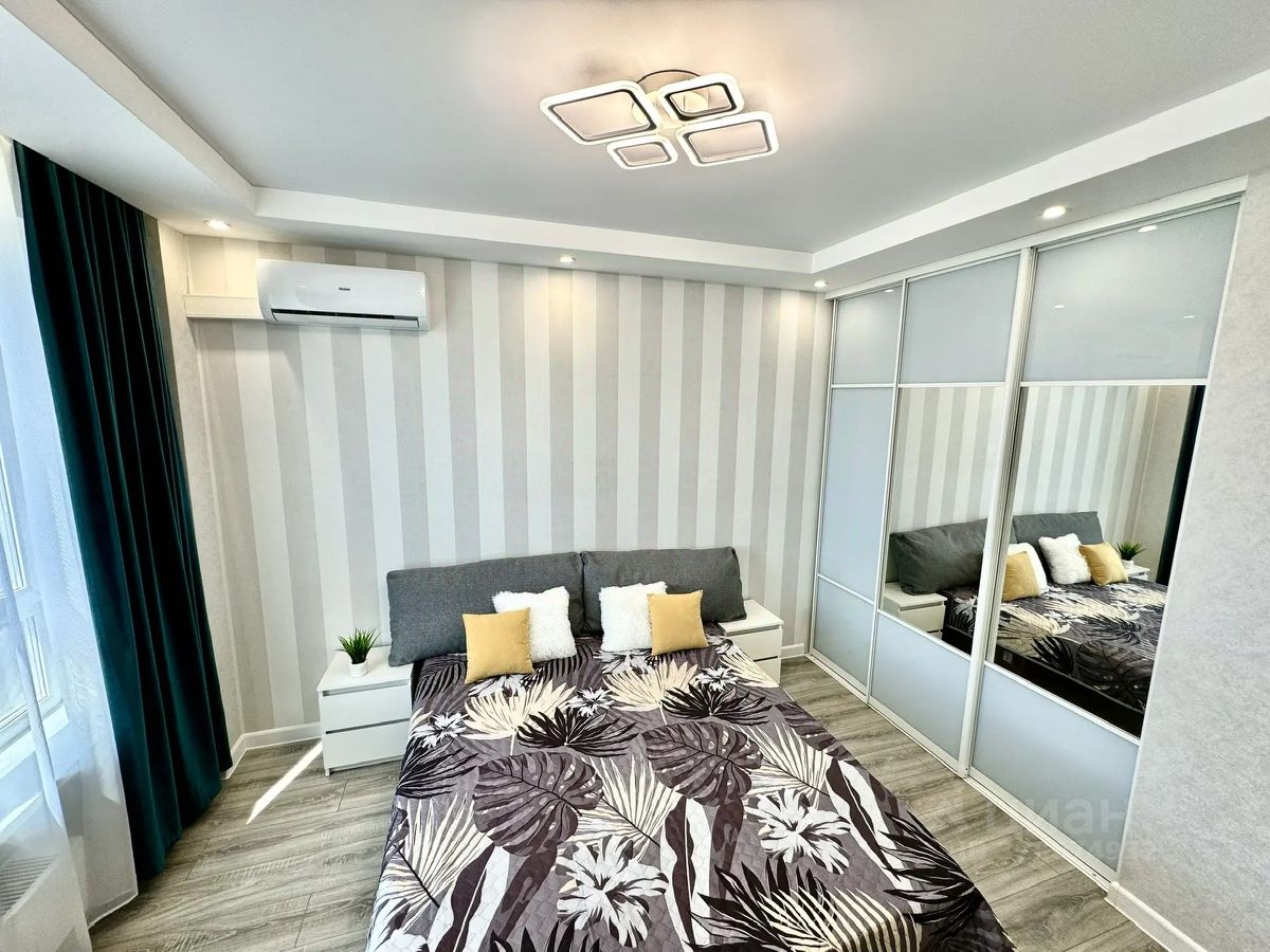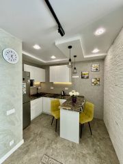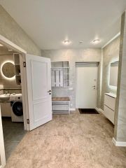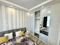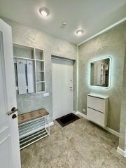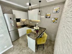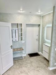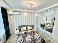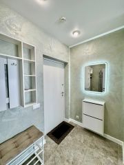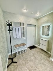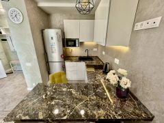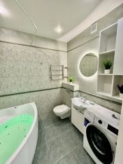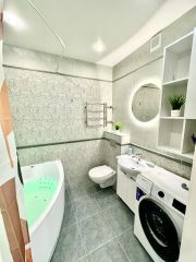 В квартире есть всё необходимое для комфортного проживания: стильная мебель в комнатах и на кухне, современная бытовая техника — холодильник, телевизор, стиральная машина и кондиционер. Просторная ванная комната оборудована ванной. Удобная планировка позволяет рационально использовать пространство.
