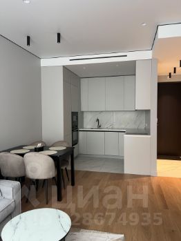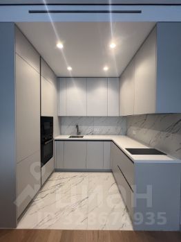 Приточно-вытяжная система кондиционирования, встроенный кухонный гарнитур со всей необходимой техникой: холодильник, посудомойка, духовой шкаф и СВЧ печь, индукционная варочная панель. Качественная итальянская сантехника, в гостиной большой телевизор. Вся мебель сделана на заказ у ведущих производителей, массивные двери высотой 2.6м, на полу инженерная доска.