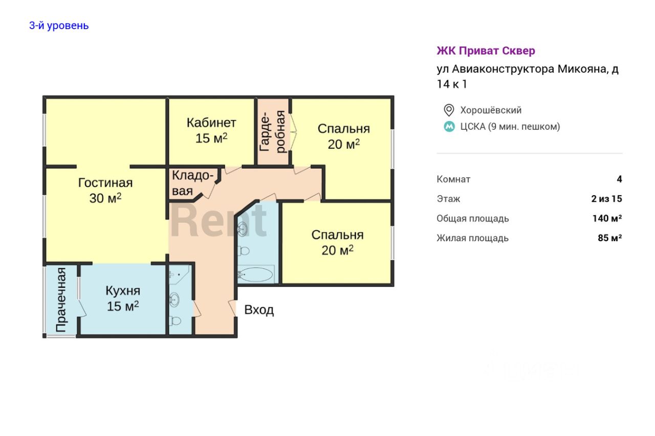 В комплексе "Приват Сквер", недалеко от парка Ходынское Поле, предлагается комфортабельная квартира. Широкая гостиная оборудована домашним кинотеатром, переходящая в столовую кухня - полным комплектом встроенной техники. Для поддержания порядка предусмотрены гардеробная и вместительные шкафы. Функционируют теплые полы и кондиционер. Окна выходят во двор.