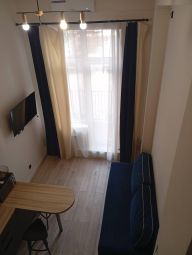 Двухуровневые апартаменты с фактической площадью 30 кв.м. Отличительная особенность- ВЫХОД НА ТЕРРАСУ, которая выводит во внутренний уютный дворик.