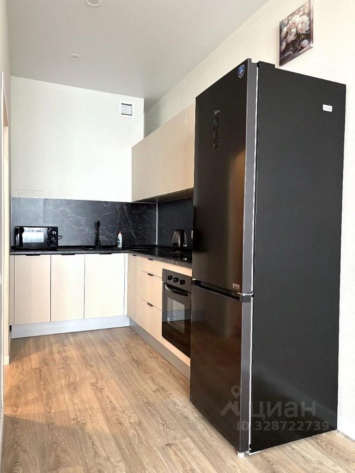 Просторная светлая комната, оформленная в современном стиле. Полностью оборудованная кухня с новой техникой.