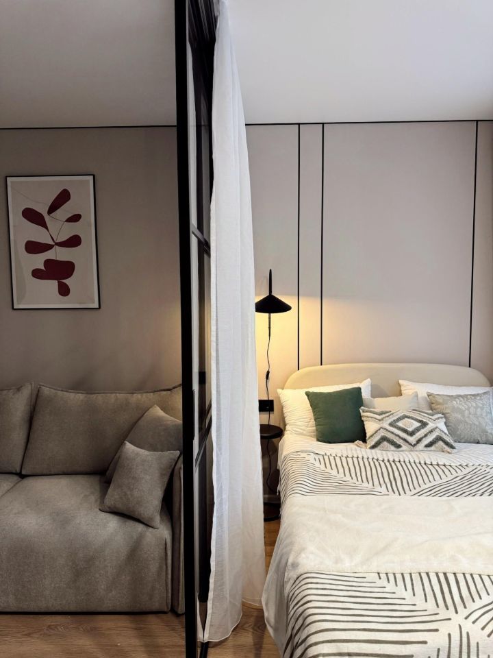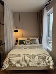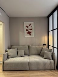 1. Два полноценных места для сна: двуспальная кровать 140*200 в отдельной спальне и удобный диван 160*200 в гостиной