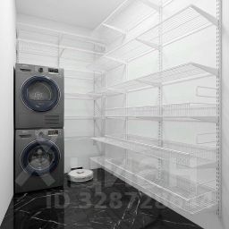 • Прачечная со стиральной и сушильной машинами, доп шкафами, полками, вешалками для хранения вещей.