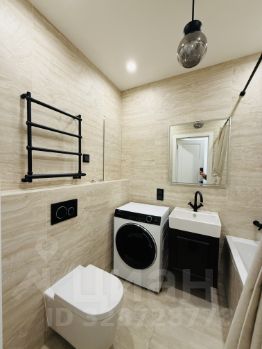 В квартире есть всё необходимое для комфортной жизни: кондиционер, холодильник, телевизор, посудомоечная, стиральная и сушильная машины.