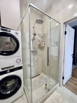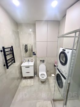 Санузел совмещенный, оснащен современной сантехникой и стиральной и сушильной машиной. В подъезде три пассажирских и один грузовой лифт.