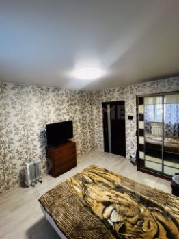 В комнате: большая двухспальная кровать, отличный большой телевизор, прекрасный шкаф-купе, комод, тумба. И самое главное есть кондиционер в рабочем состоянии.