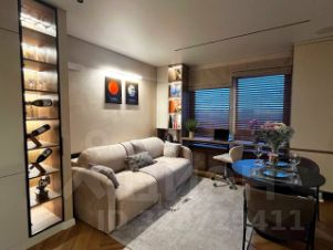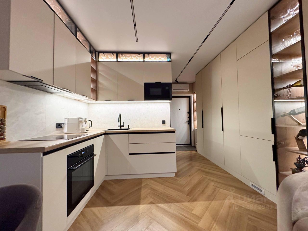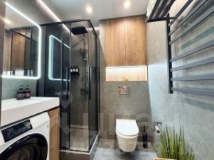 В квартире выполнен дизайнерский ремонт. Здесь есть все необходимое для комфортного проживания: встроенная мебель, кондиционер, холодильник, посудомоечная и стиральная машины, а также телевизор, робот пылесос . Санузел совмещенный, оборудован современной душевой кабиной. Окна выходят на улицу.