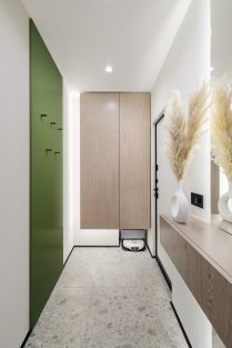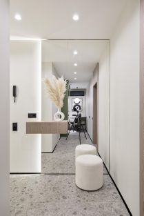 В прихожей расположен моющий робот-пылесос Roborock S8 MaxV Ultra - его более чем достаточно, чтобы поддерживать полы всегда в чистоте. К устройству можно подключиться дистанционно и наблюдать, что происходит в квартире (доступ ко всем системам есть только у жильцов).