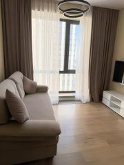 Paсположена на 38 этаже 52-х этажной башни. Квартира полностью меблированы и оснащены всей необходимой техникой и оборудованием. Мебель выполнена по индивидуальному проекту на заказ.