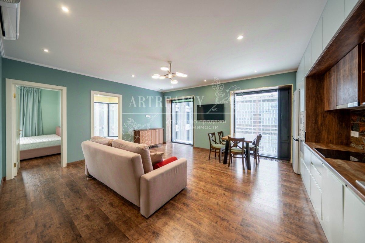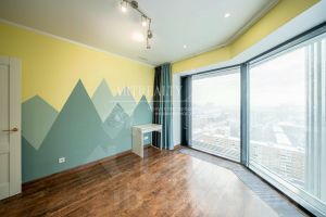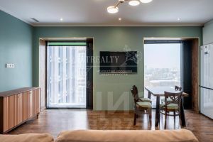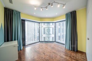 Высокие потолки и и панорамные окна делают квартиру светлой и комфортной.