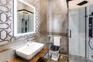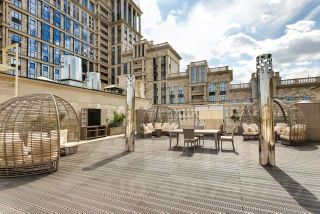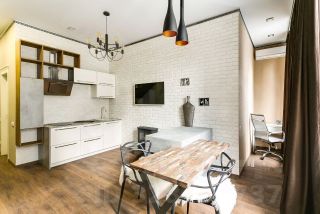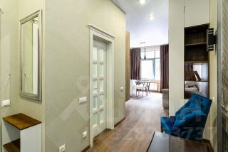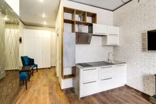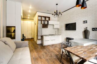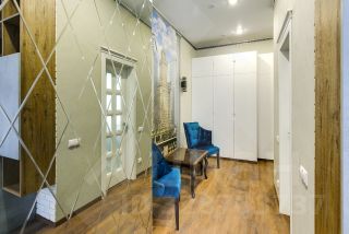 В апартаменте, площадью 37 кв.м. выполнен ремонт по индивидуальному дизайн проекту из экологически чистых материалов от ведущих мировых производителей. Грамотное зонирование дает возможность с удобством отдохнуть, поработать, приготовить любимое блюдо. Апартамент полностью укомплектован мебелью и техникой известных брендов. Кухня столовая с островом и камином. Панорамные окна во внутренний Парк, с великолепным видами на фасады в стиле ампир, зелень, фонтанами, зонами релакс, очень тихо и комфортно. В доме предусмотрен подземный паркинг, а так же большая гостевая парковка.