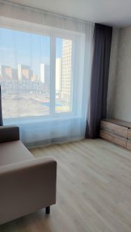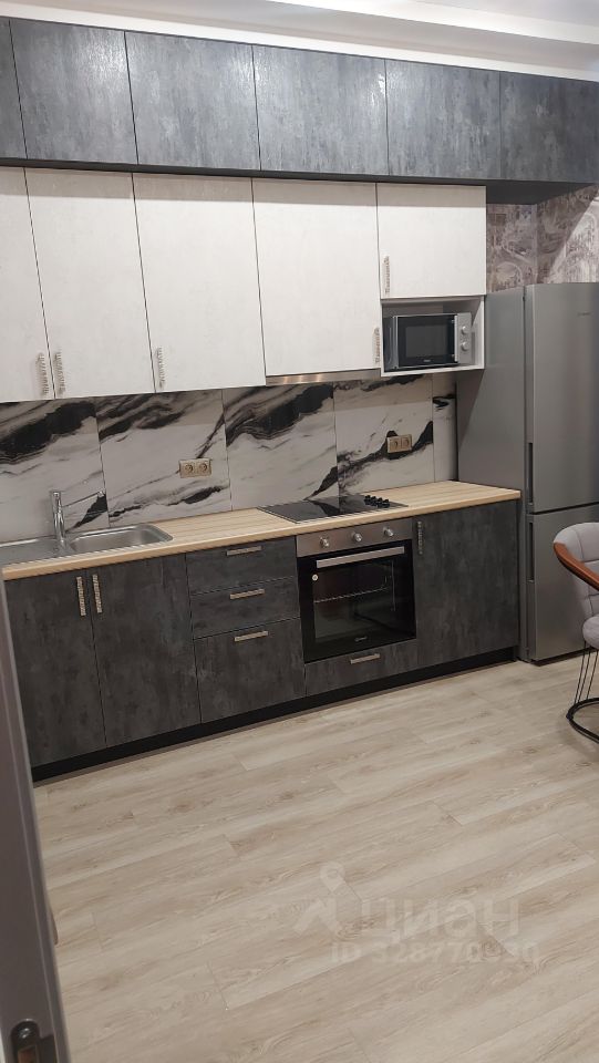В квартире сделан евроремонт: она полностью готова для комфортного проживания. На кухне и в комнате есть вся необходимая мебель. Установлена современная техника — кондиционер, холодильник и стиральная машина. Ванная комната оснащена душевой кабиной и объединена с санузлом.