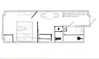 О квартире: кухня-гостинная 13.6, спальня 10.6, коридор 2.3, санузел 2.7.