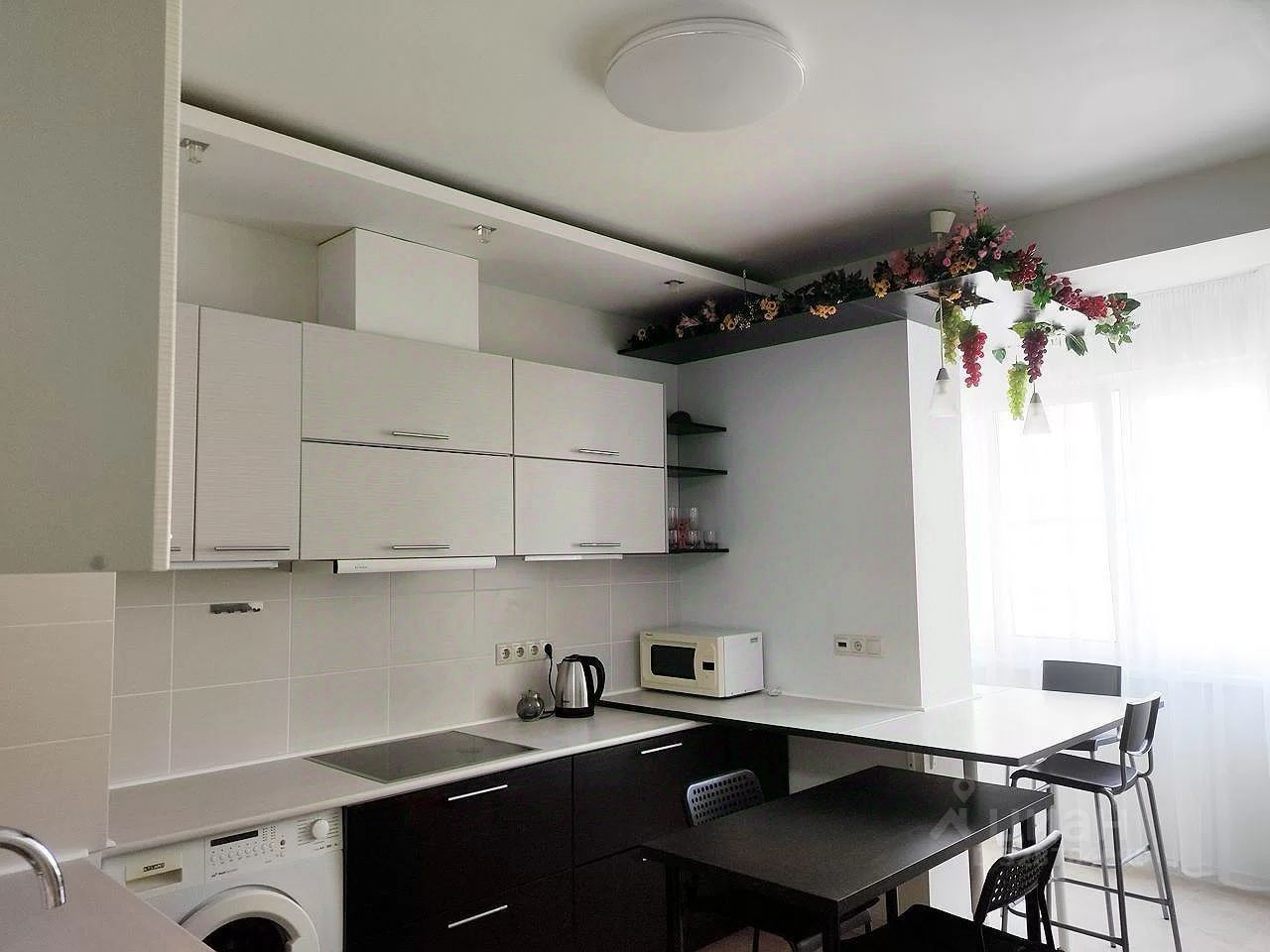 В квартире есть всё необходимое для комфортной жизни: современная мебель на кухне и в комнате, а также полный комплект бытовой техники — холодильник, телевизор, посудомоечная и стиральная машины. Санузлы представлены одним совмещённым и одним отдельным, в ванной комнате есть как ванна, так и душевая кабина. Приятным дополнением является наличие лоджии.