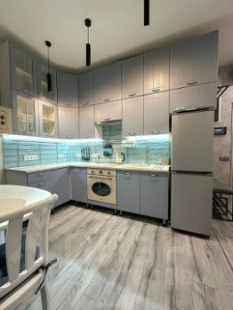 В квартире есть все для комфортной жизни: современная мебель на кухне и в комнате, а также полный комплект техники — холодильник, кондиционер, стиральная машина, телевизор и посудомоечная машина. Планировка включает совмещенный санузел с ванной и один балкон, где можно отдохнуть на свежем воздухе.