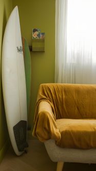 Делал квартиру под себя, продумывал каждую деталь. Много натурального дерева, дубовый паркет, столетний винтажный буфет, окна открываются настежь — обе створки. Полная тишина от соседей.