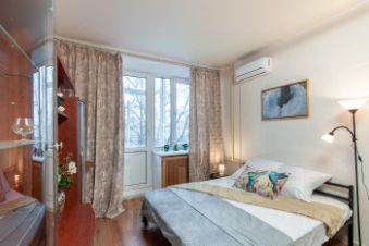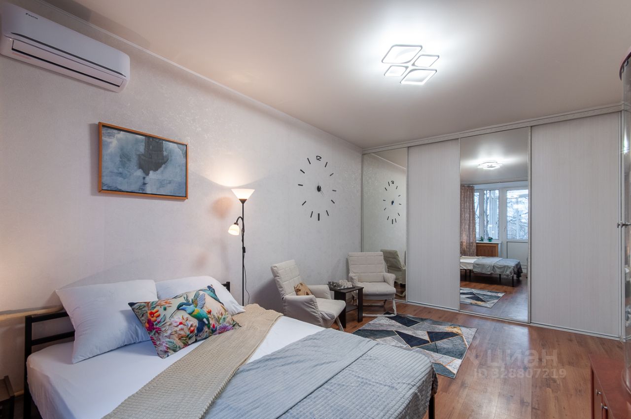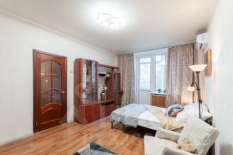 Квартира после ремонта, в отличном состоянии. На кухне есть необходимая мебель, готовая к использованию, а также холодильник. Комната оснащена кондиционером и вместительным шкафом купе для хранения вещей.